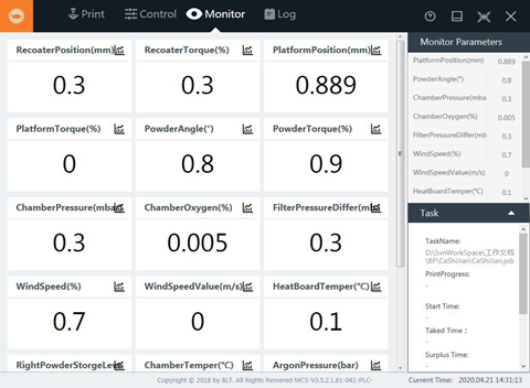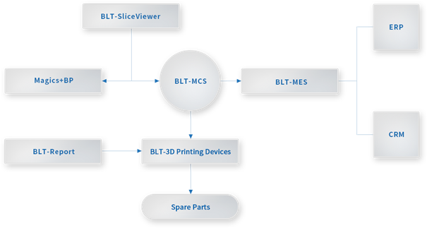 BLT additive manufacturing firm independently developed 3D metal printer software. BLT-MCS for real-time inspection of 3D metal printer devices; data segmentation and measurement software BLT-Slice Viewer; BLT-Report and BLT-MES smart product management software are used for report statistics.